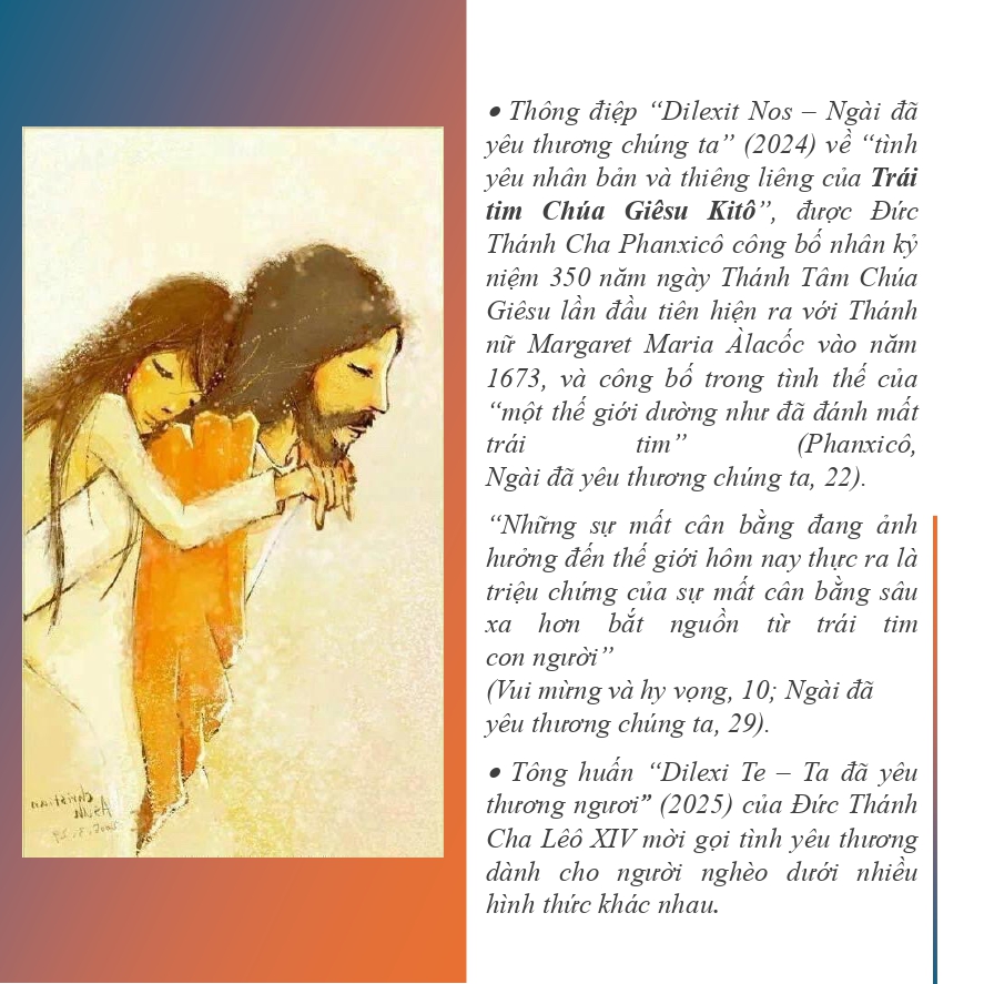 3. Tông huấn “Dilexi Te – Ta đã yêu thương ngươi” (2025) của Đức Thánh Cha Lêô XIV mời gọi tình yêu thương dành cho người nghèo dưới nhiều hình thức khác nhau.