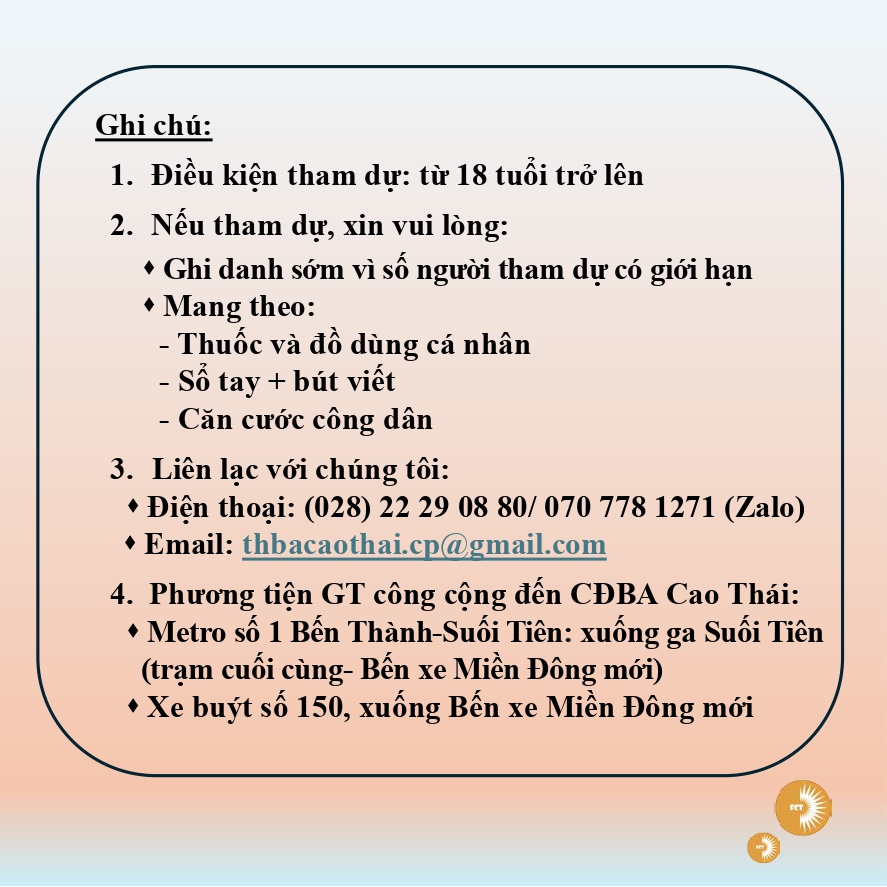 👉 Để thuận lợi cho việc đăng ký Khóa Tĩnh Tâm & Cấm Phòng, kính mời quý độc giả điền thông tin trong form theo đường Link đăng ký hoặc Click vào đây.